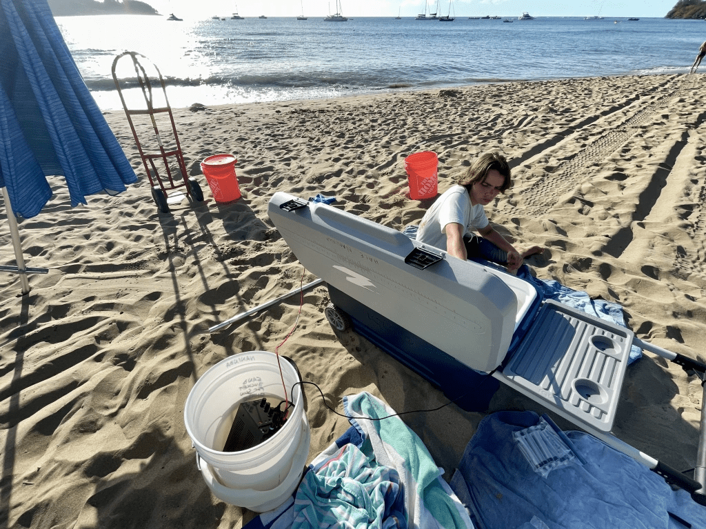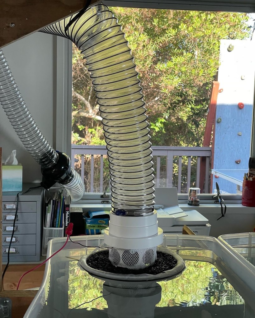 I performed a series of tests in Hawai’i using fresh ocean water and 5- and 25-gallon closed experimental chambers. All experiments were performed outside on the beach to ensure adequate ventilation. The initial observations can be found here, and final analysis is here.